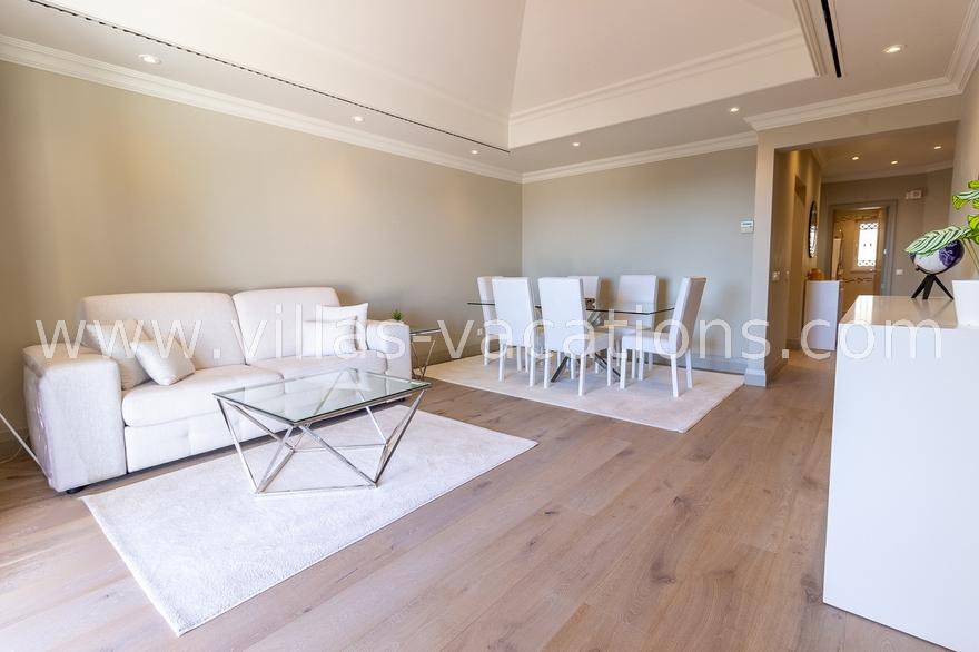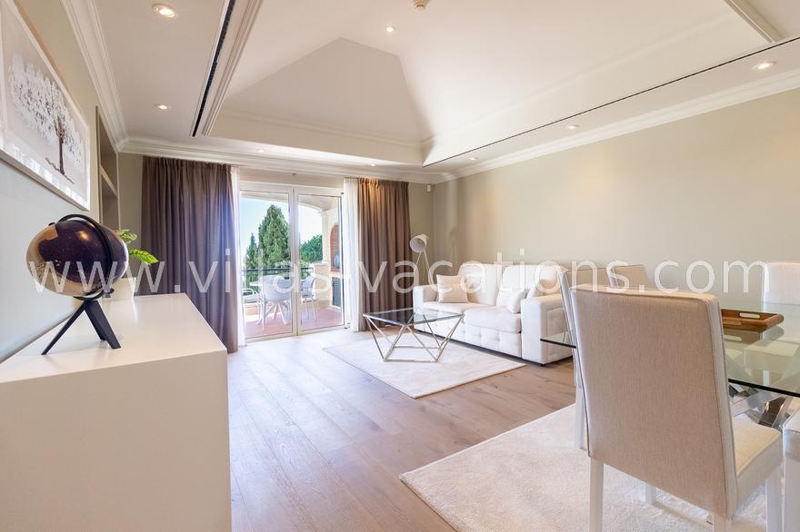 The lounge opens onto a private terrace, where you can relax on your sun loungers and take in the stunning sea views.