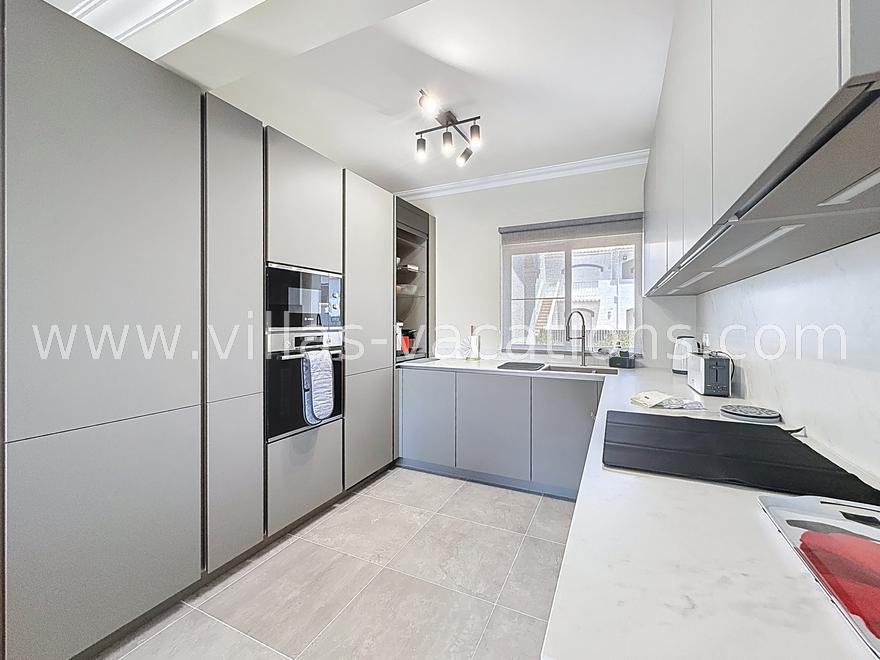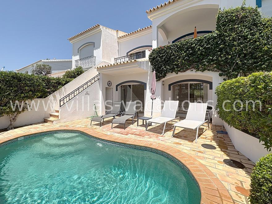 On the first floor, there is an extremely pleasant sunny terrace with exterior furniture and a charcoal BBQ, perfect for dining al fresco, and stairs leading down to the pool area.