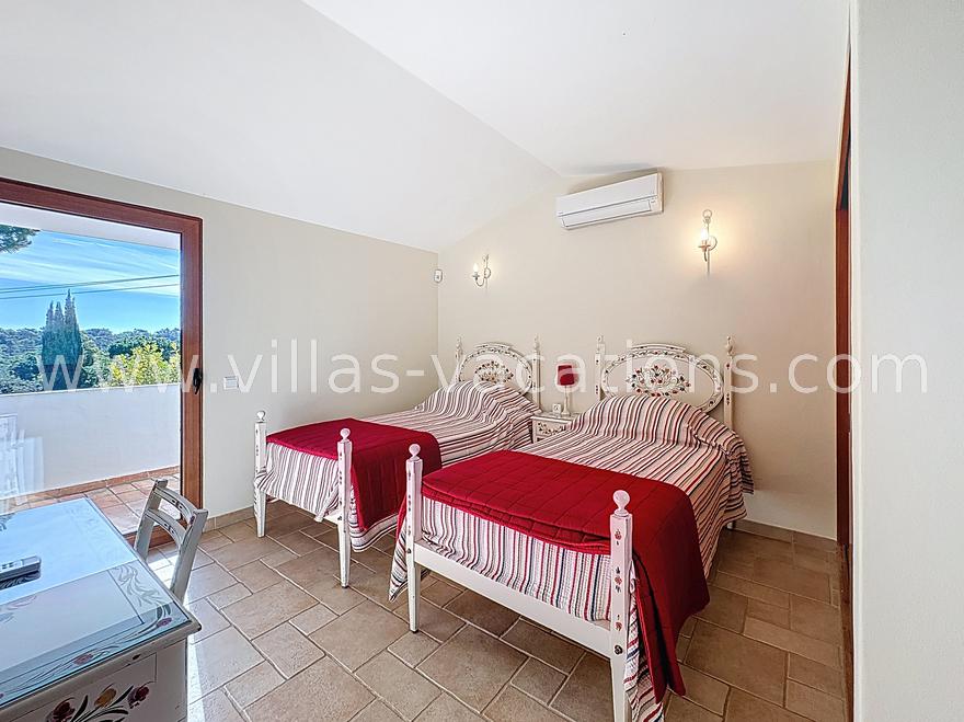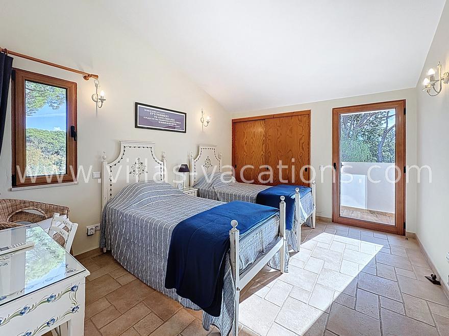Two bright twin bedrooms, both made with single beds (please note that in one bedroom there is a possibility to make the beds up as a double bed). Both of these bedrooms have ensuite bathrooms and private terraces overlooking the stunning gardens (perfect for watching the sunset).