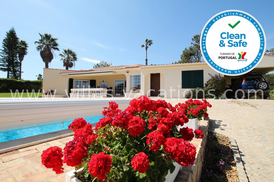 The gates to the villa are electric, leading to a cobblestone driveway and a covered parking area which is great to keep the car cool during hot summer months!