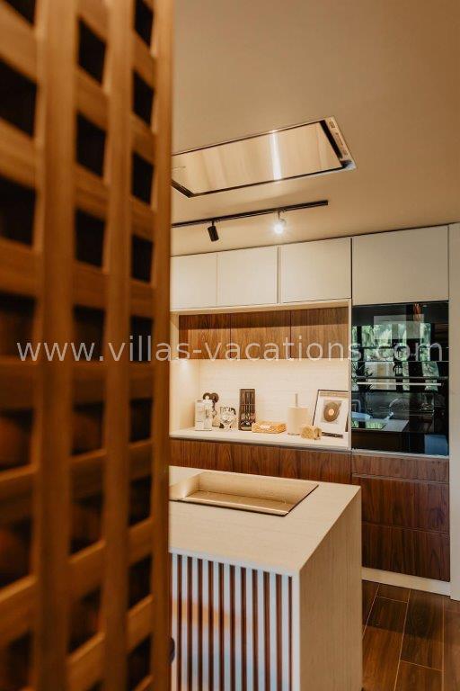 Modern, fully Italian style equipped kitchen with Bosch appliances and natural stone countertops.